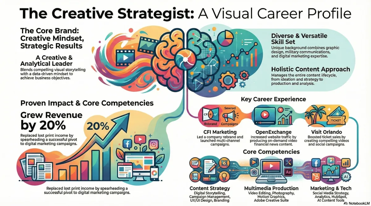 Jessica brings leadership and collaboration to the table. She’s adept at project management, guiding small teams, and spearheading ideation for cross-channel platforms. Her ability to blend technical precision with creative vision consistently results in emotionally compelling and strategically impactful work.